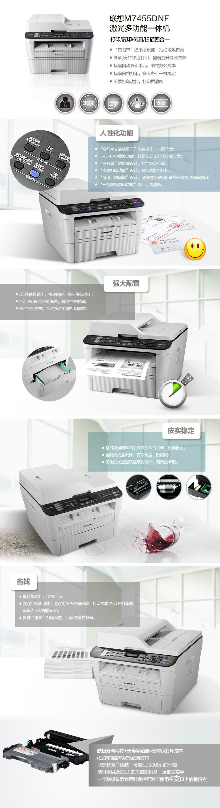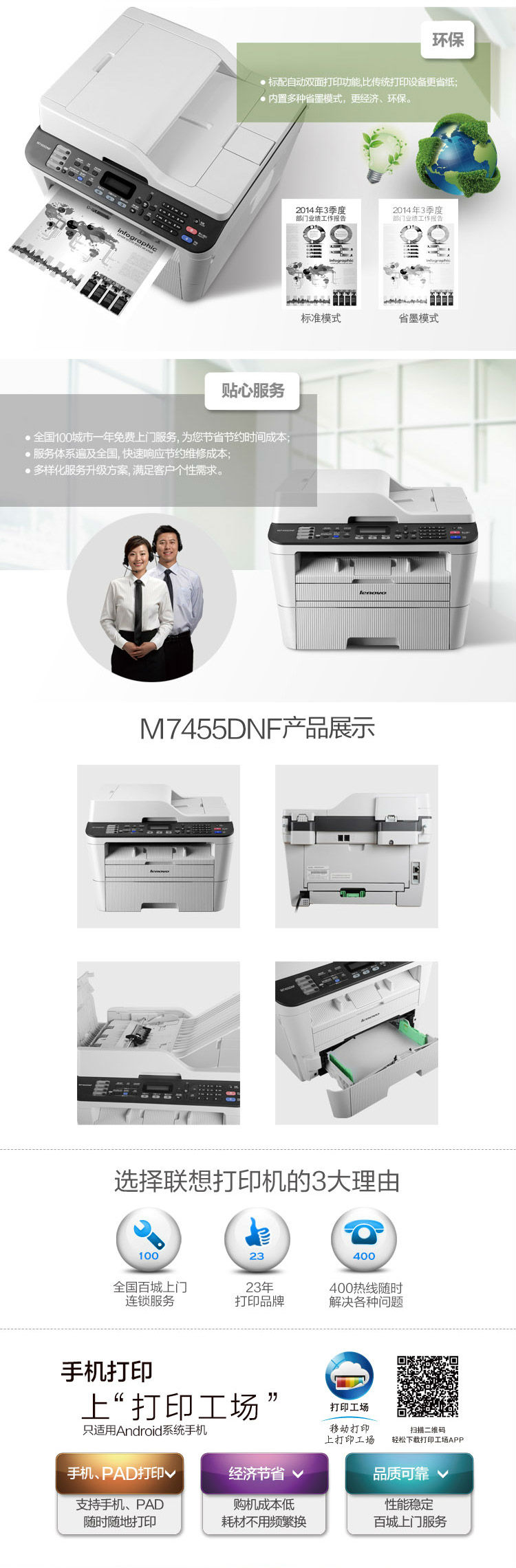 商品名称:联想(Lenovo)M7455DNF 黑白激光多功能一体机自动双面打印