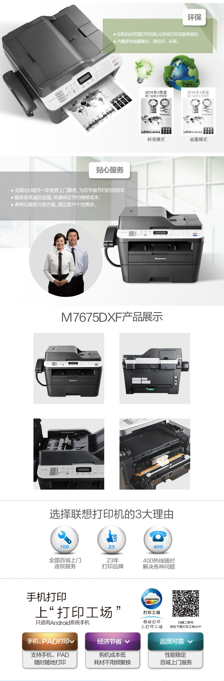 商品名称:联想(Lenovo)M7675DXF 黑白激光多功能一体机 自动双面打印