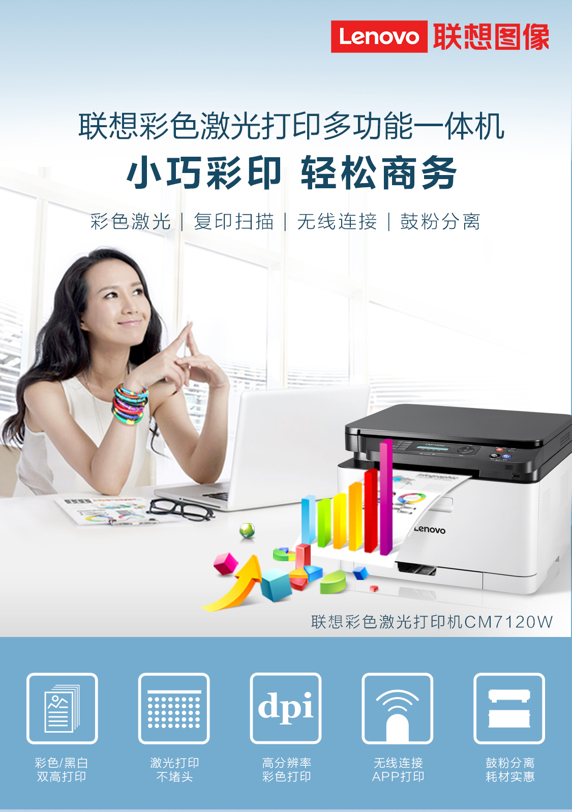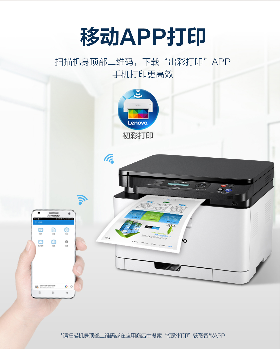 联想(Lenovo)CM7120W 彩色激光有线网络+无线WiFi打印多功能一体机