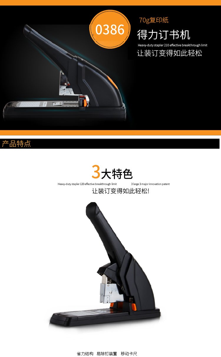 商品名称:得力0386重型订书机 加厚订书器 黑色