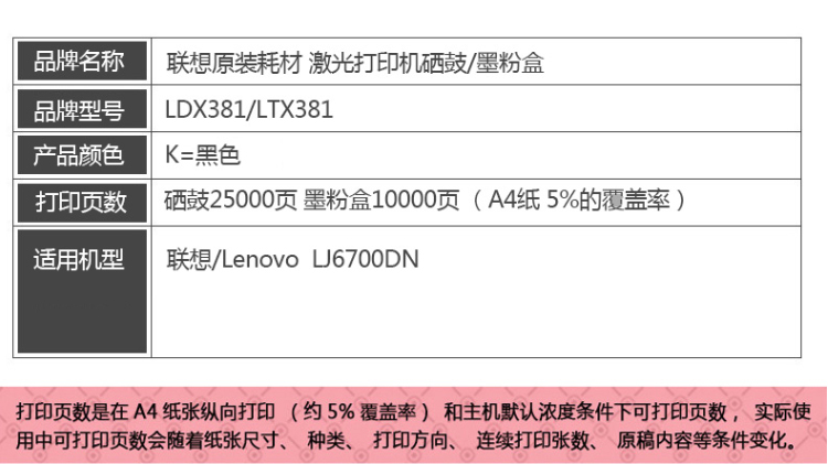 商品名称:联想(Lenovo)LDX381硒鼓(适用于:LJ6700DN)