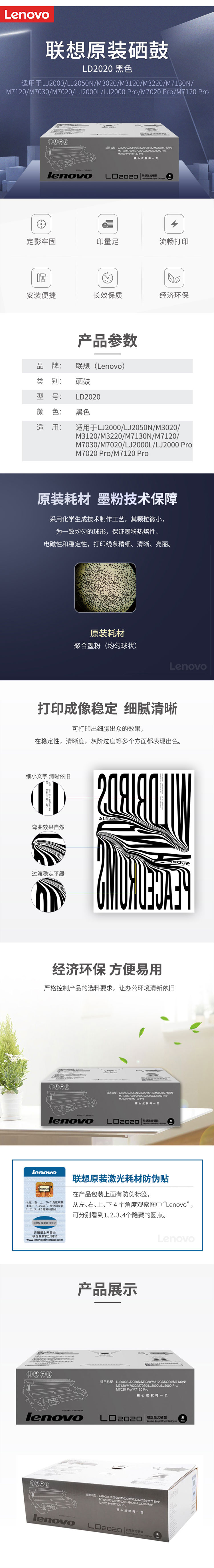 商品名称:联想(Lenovo)LD2020 黑色硒鼓(适用于:LJ2000 M3120 M7120 M7030打印机)