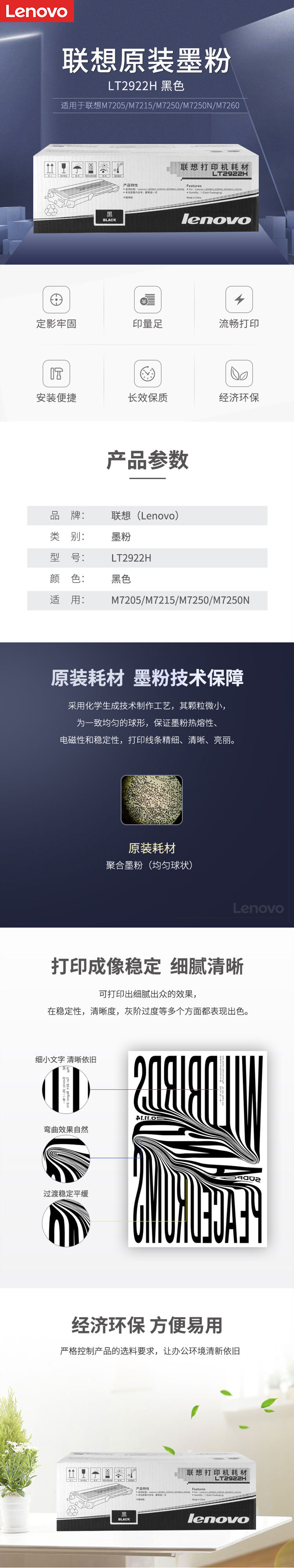 商品名称:联想(Lenovo)LT2922H高容黑色墨粉(适用于:M7205 7215 7250 7250N 7260打印机)