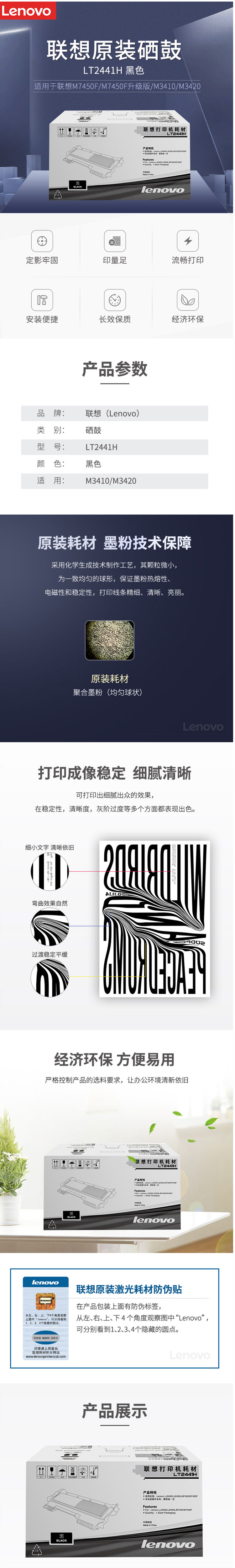商品名称:联想(Lenovo)LT2441H黑粉(高容)(适用于:LJ2400T/LJ2400/M7400/M7430F)
