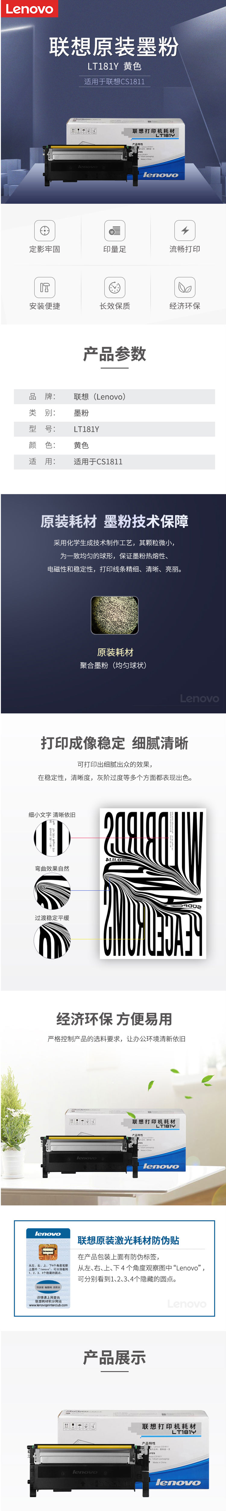 商品名称:联想(Lenovo)LT181Y黄色原装墨粉(适用于:CS1811)