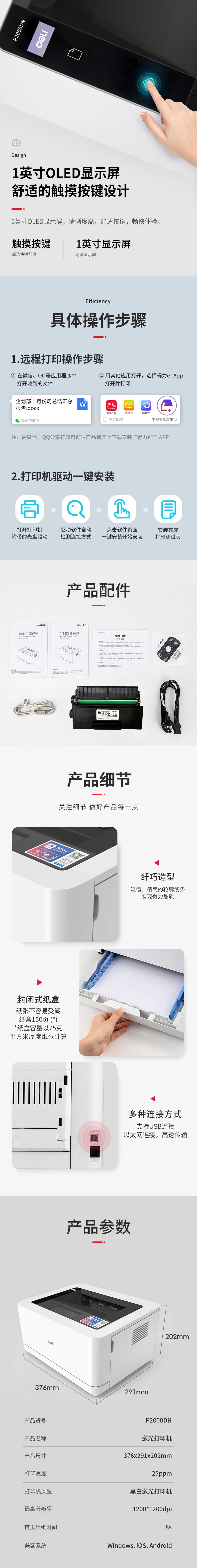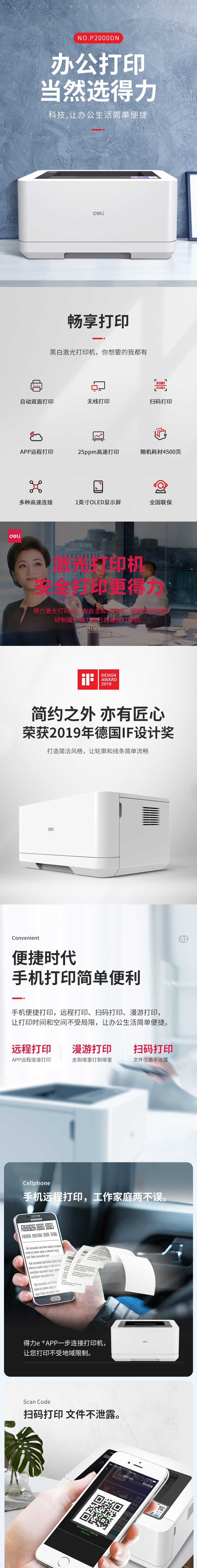 商品名称:得力P2000DN激光打印机