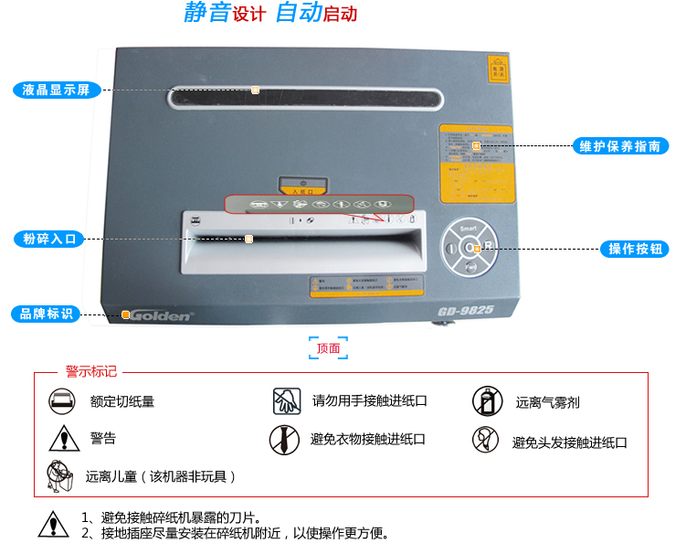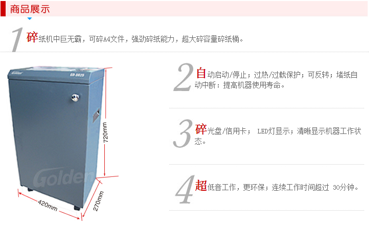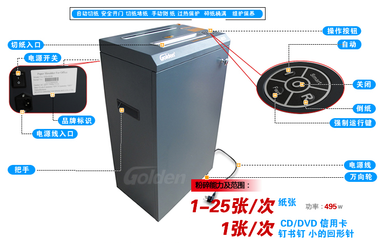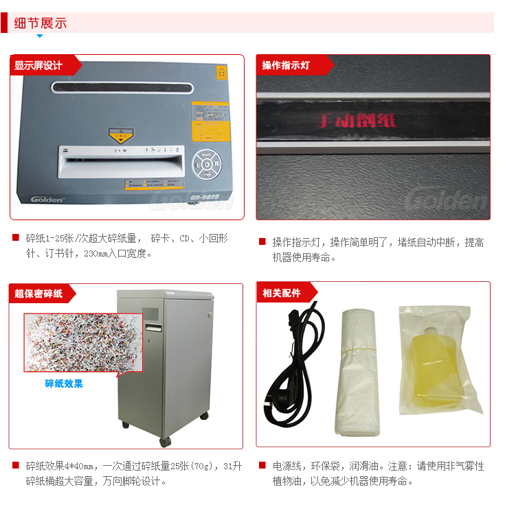 商品名称:金典(GOLDEN)GD-9825碎纸机 多功能多材质铁壳销毁粉碎机