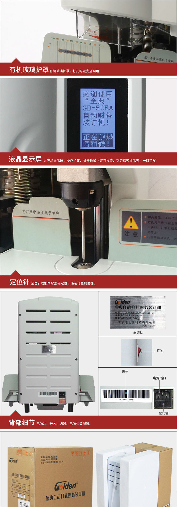 商品名称:金典(GOLDEN)GD-50EA装订机财务凭证装订机自动打孔机会计档案电动装订机