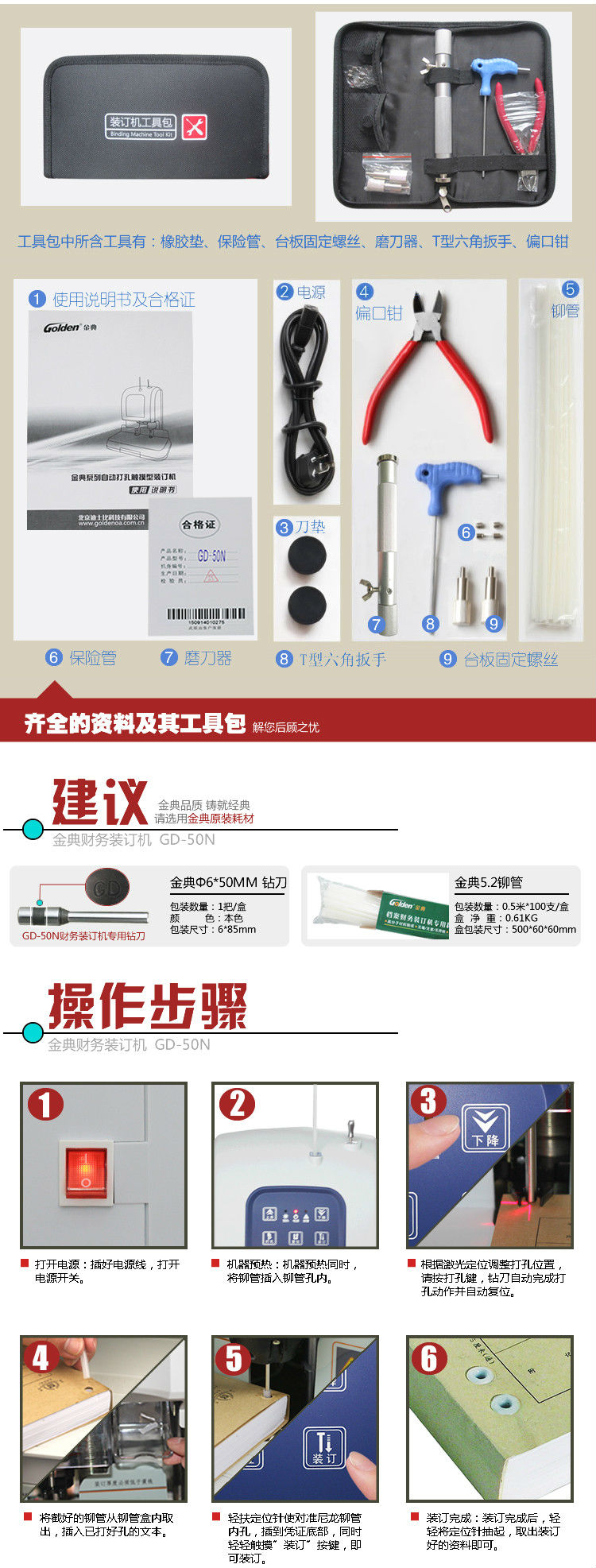 商品名称:金典(GOLDEN)GD-50N装订机财务凭证装订机 档案打孔机 激光电动升级版
