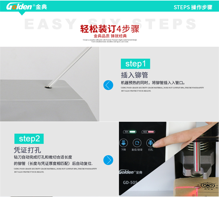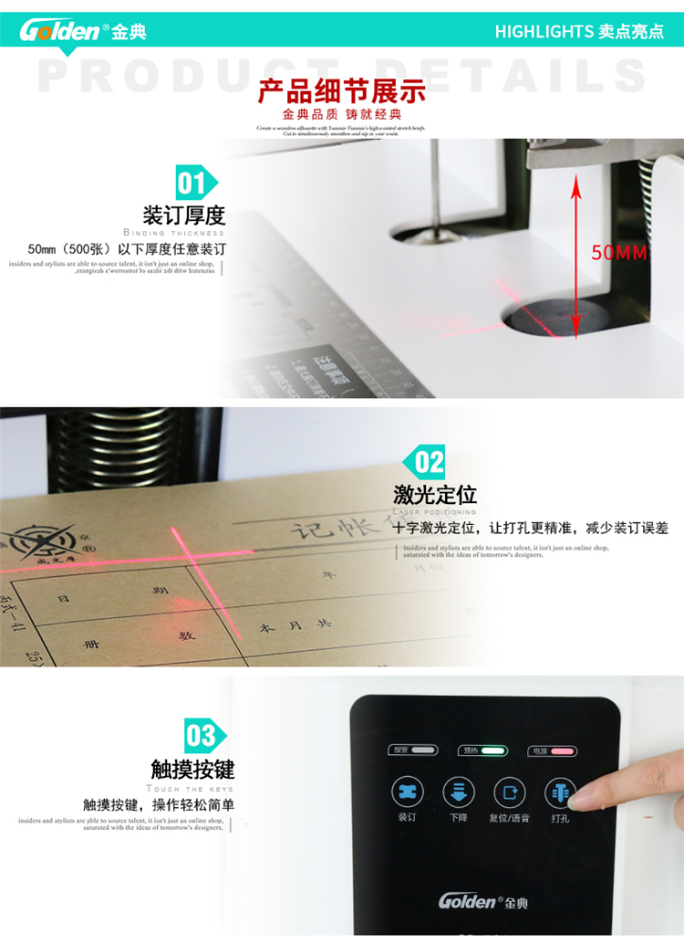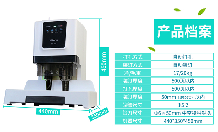 商品名称:金典(GOLDEN)GD-50S装订机财务凭证装订机自动财务档案打孔机 电动打孔装订