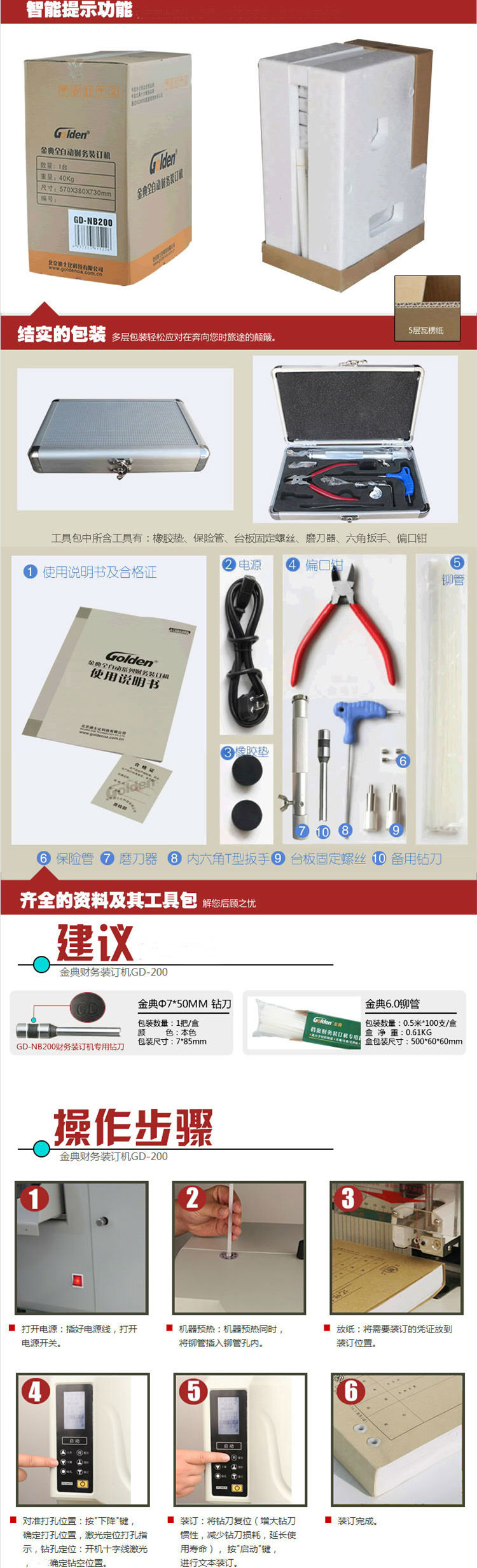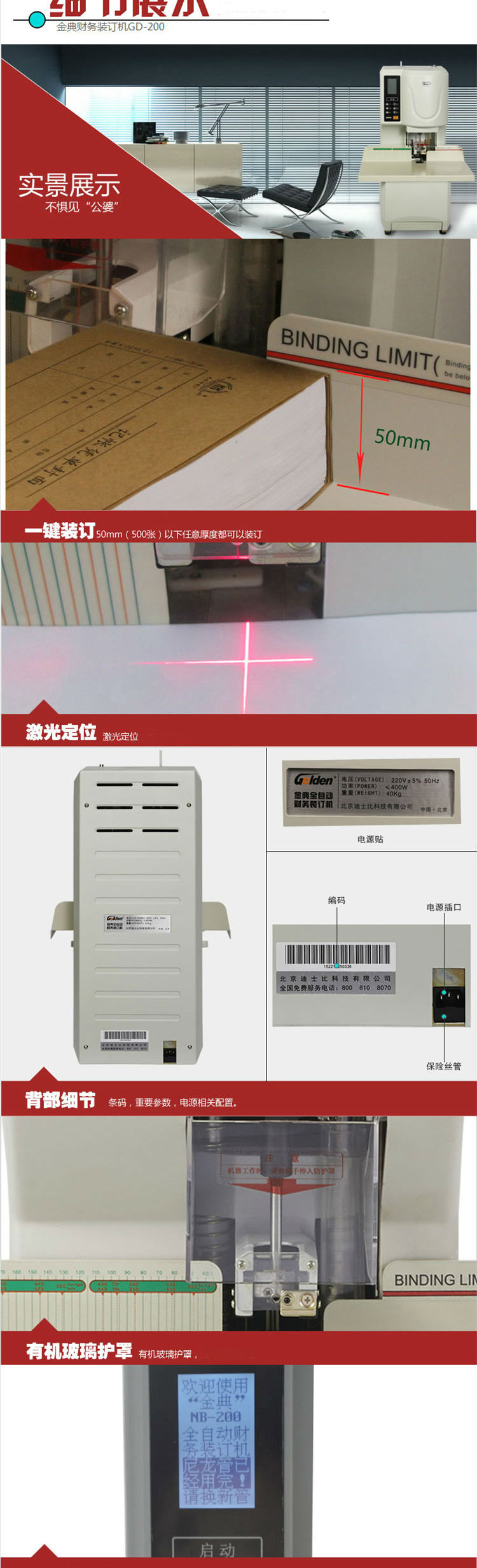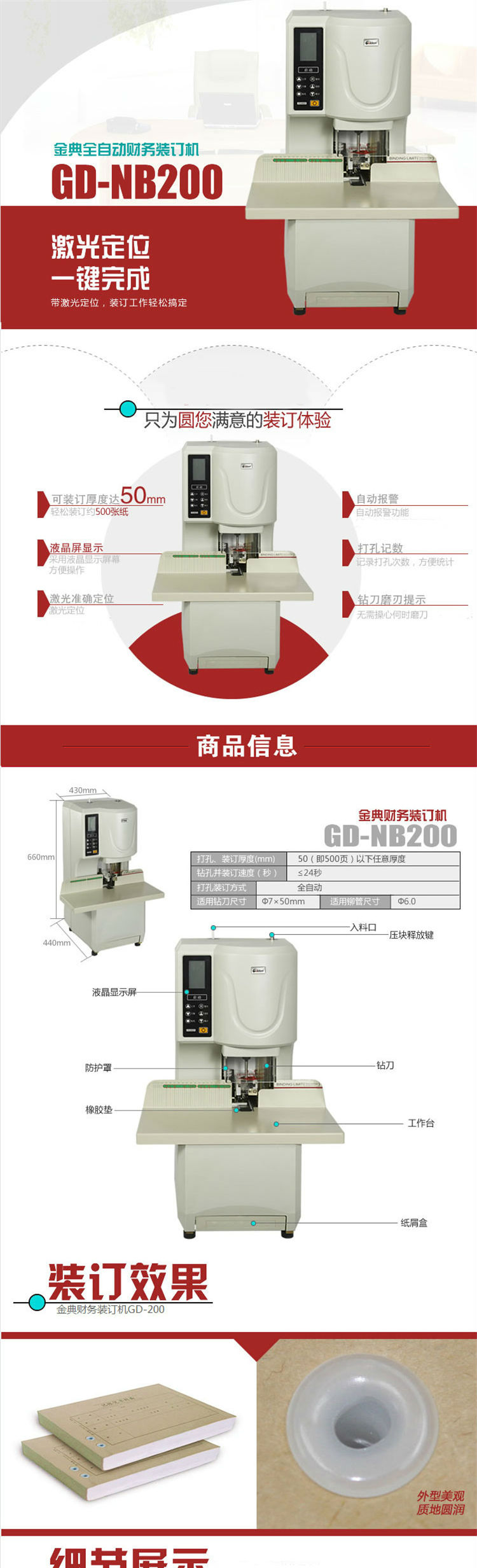 商品名称:金典(GOLDEN)GD-NB200装订机财务凭证装订机全自动打孔一键装订