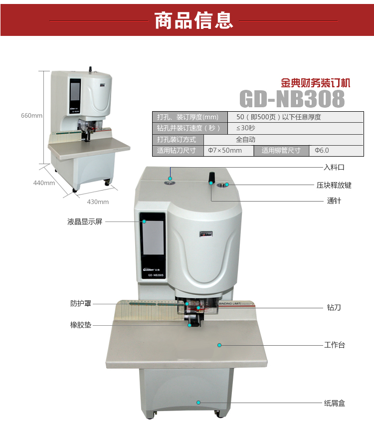 商品名称:金典(GOLDEN)GD-NB308全自动财务凭证装订机 电动档案 一键激光定位 一键装订升级版