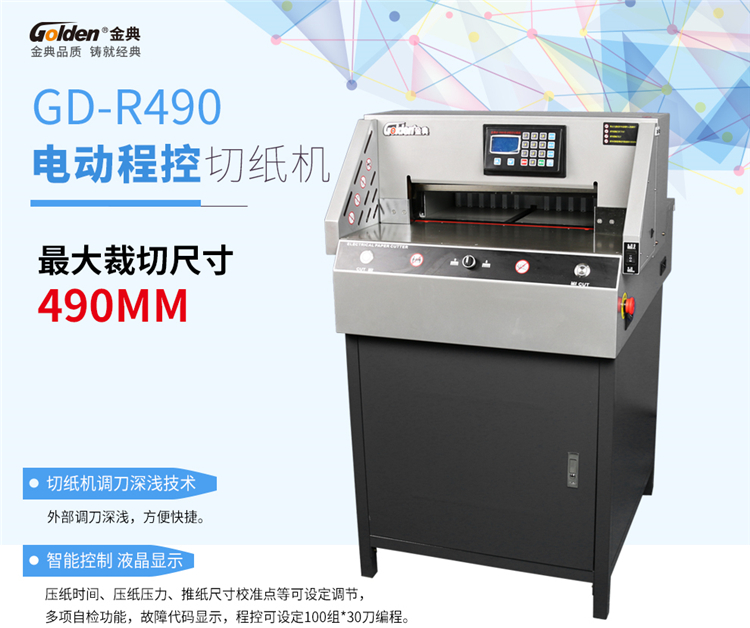 金典(GOLDEN)GD-R490切纸机裁纸机厚层切纸刀裁纸刀 A3+8厘米+程控