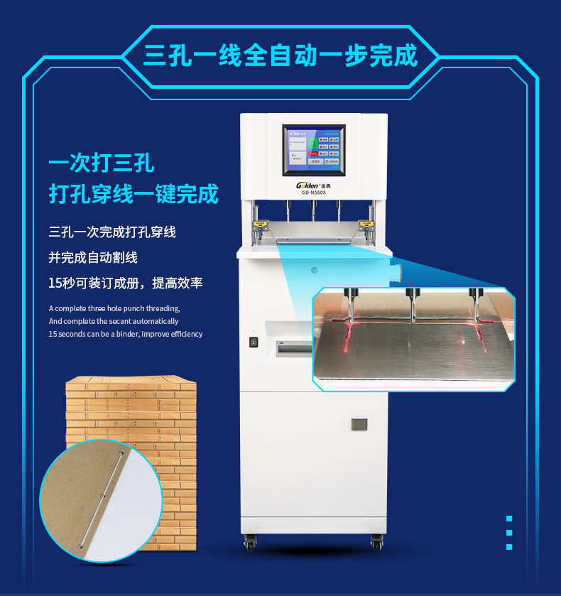 商品名称:金典(GOLDEN)GD-NB5808档案装订机 三孔装订机 线装机 全自动打孔装订