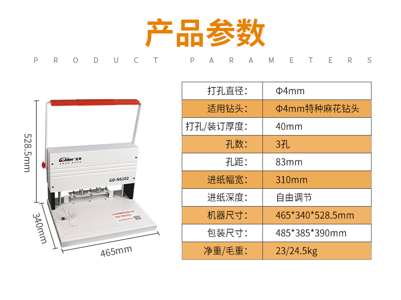 商品名称:金典 GOLDEN GD-N6102 打孔机 三孔电动打孔器
