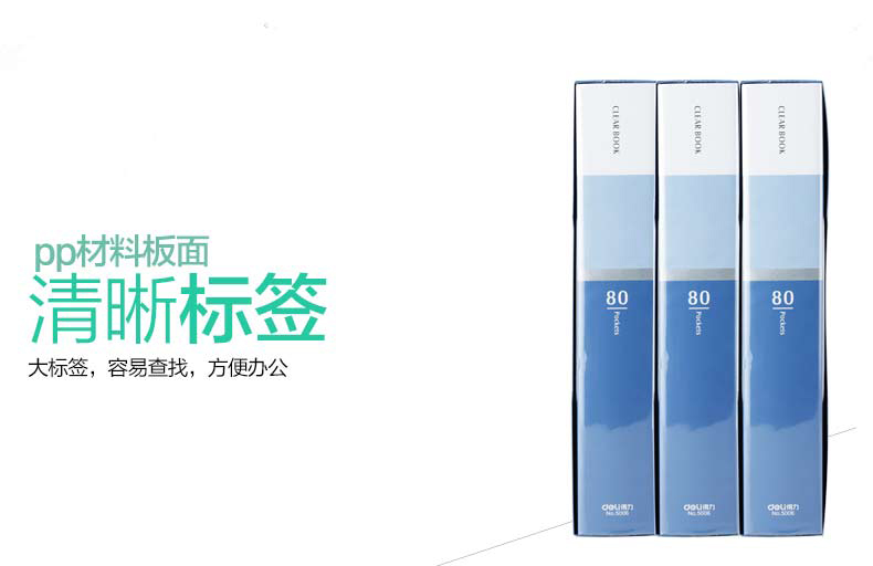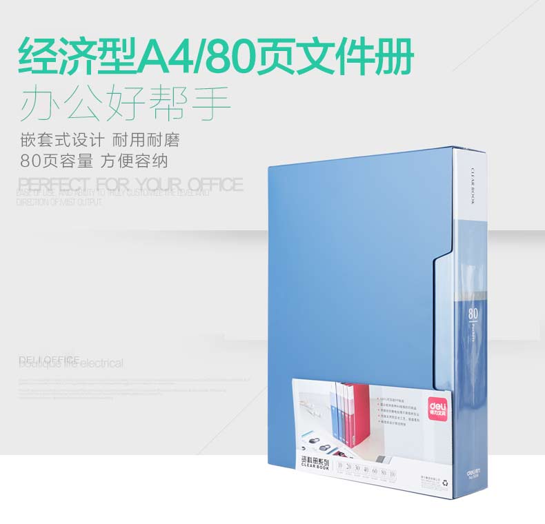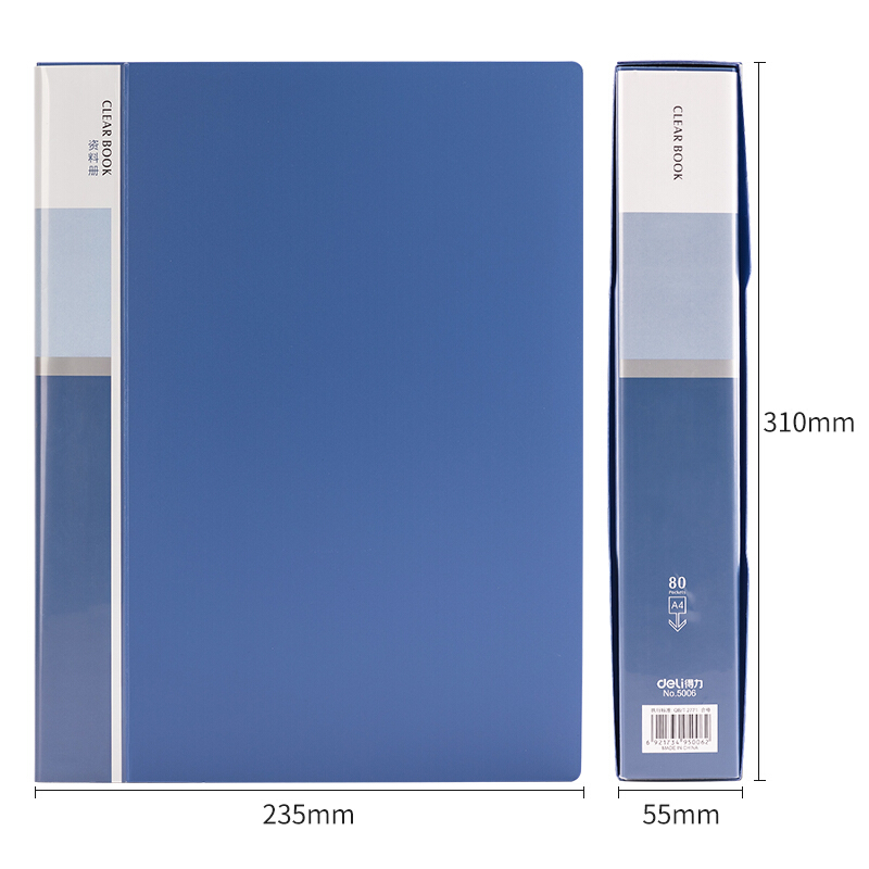 商品名称:得力5006资料册 蓝色80页插页袋透明文件袋