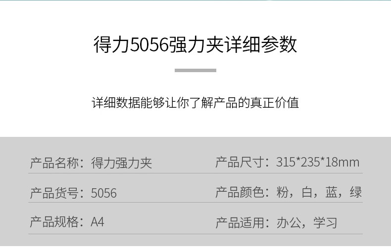 商品名称:得力(deli)彩色文件夹双夹 强力夹资料夹 5056蓝色