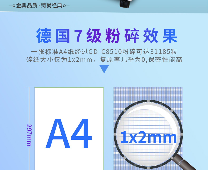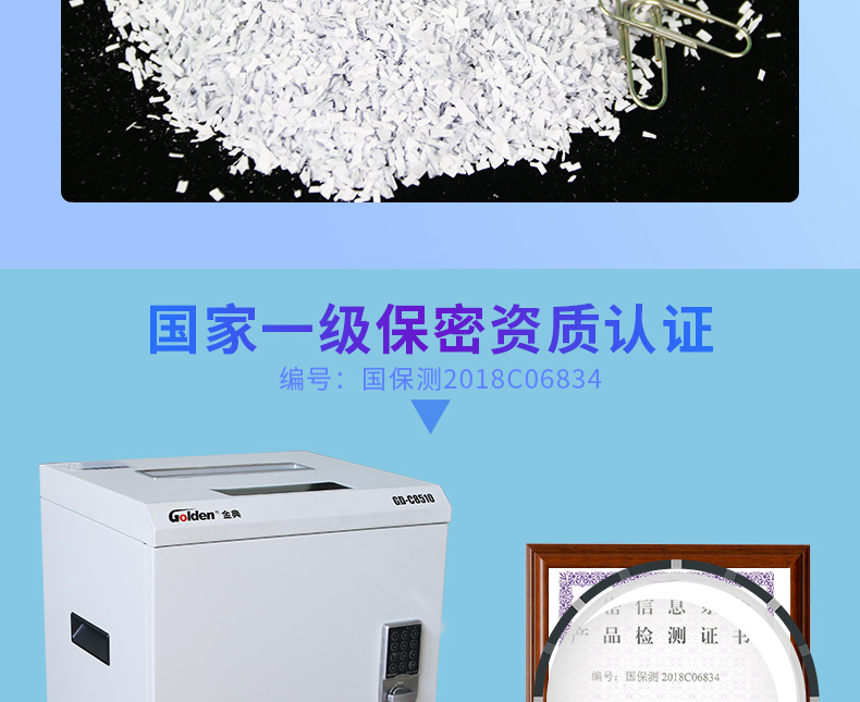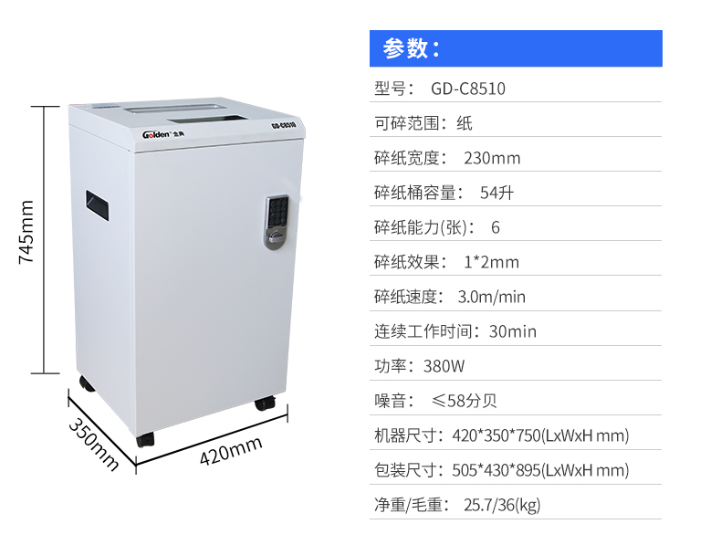 商品名称:金典(GOLDEN)GD-C8510碎纸机 高保密碎纸机 大容量碎纸机