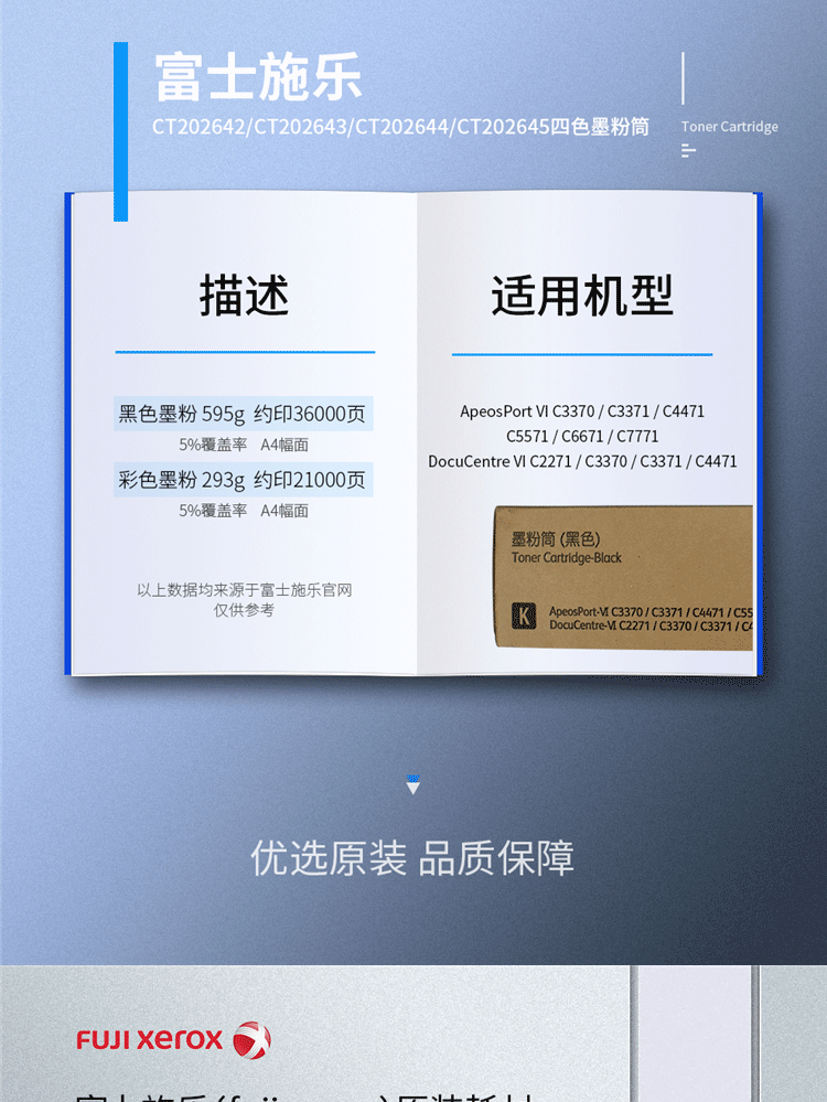 商品名称:富士施乐(Fuji Xerox)CT202642 黑色墨粉盒(适用于:C3370/C3371/C4471/C5571机型)