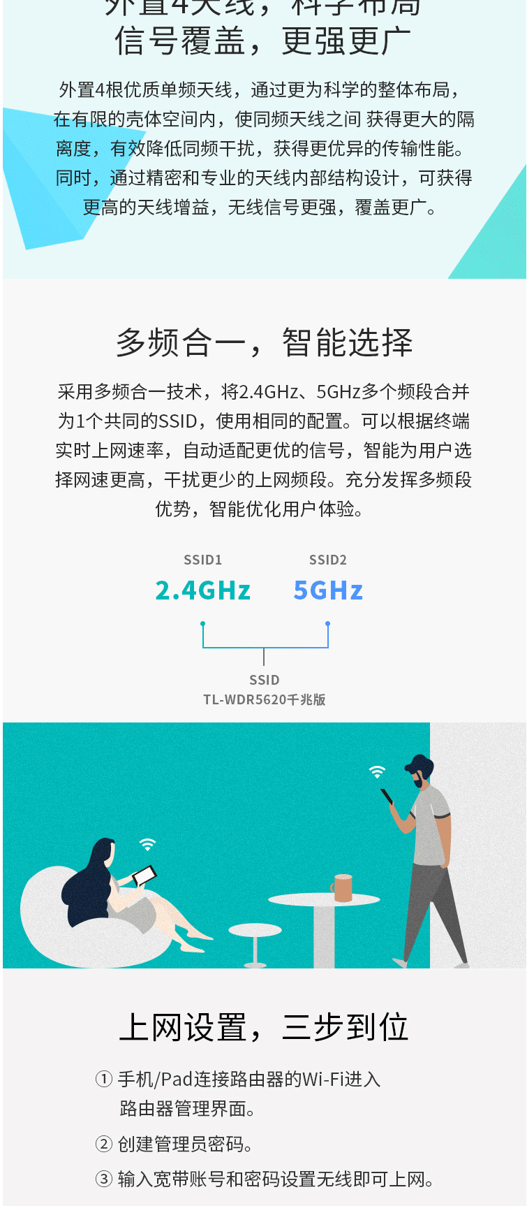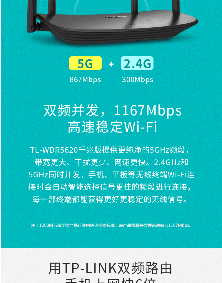 商品名称:TP-LINK双千兆路由器 WDR5620千兆版 无线穿墙AC1200 5G双频wifi