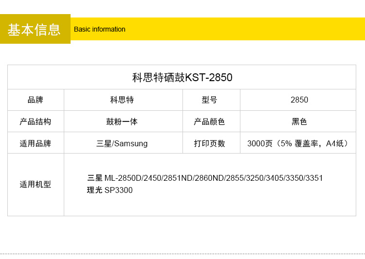 商品名称:科思特 KST-2850硒鼓 适用三星 ML-2850D/2450/2851ND/2860ND/2855/3250/3405/3350/3351,Ricoh SP3300黑色 专业版