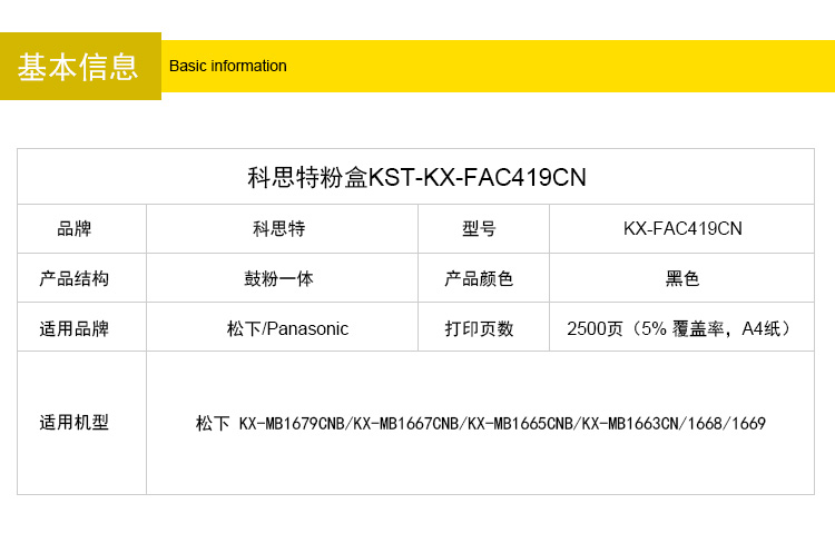 商品名称:科思特 419粉盒 适用松下 KX-MB1679CNB/KX-MB1667CNB/KX-MB1665CNB黑色 专业版