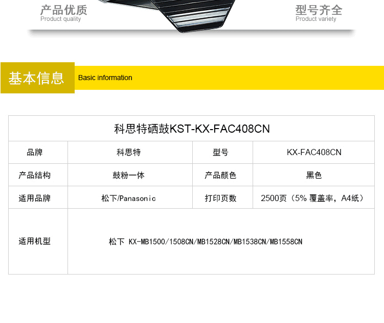 商品名称:科思特 408硒鼓 适用松下 KX-MB1500/1508CN/MB1528CN/MB1538CN/MB1558CN黑色 专业版
