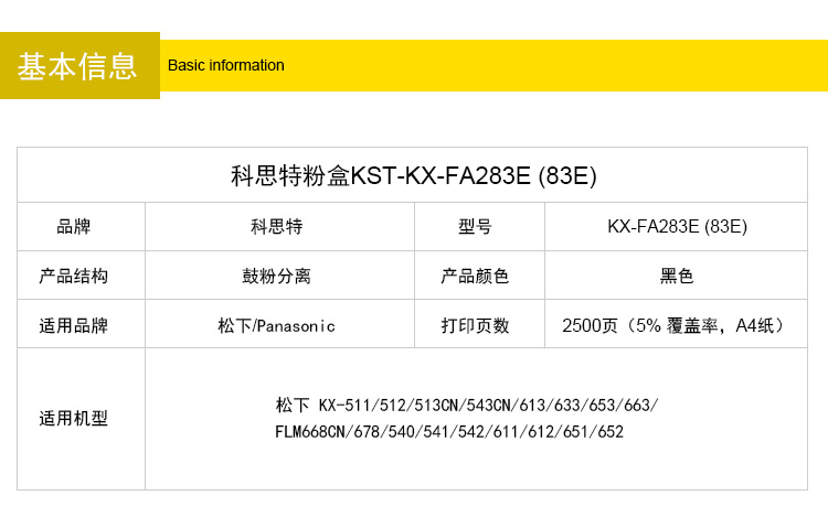 商品名称:科思特 83E(粉筒)适用松下 KX-511/512/513CN/543CN/613/633/653/663/FLM668CN/678/540/541/542/611/612/651/652黑色 专业版