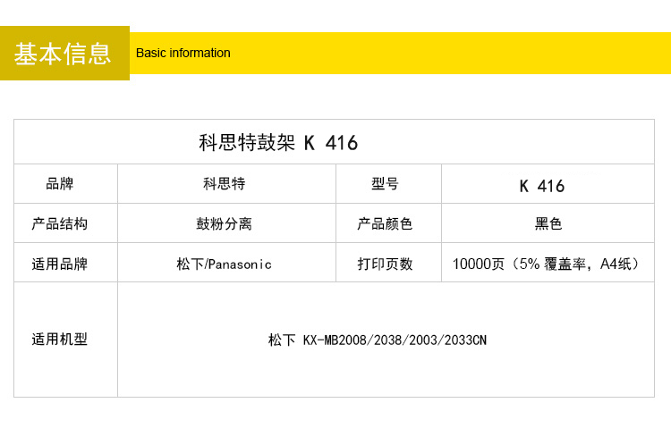 商品名称:科思特 416(鼓架) 适用松下 KX-MB2008/2038/2003/2033CN.黑色 专业版