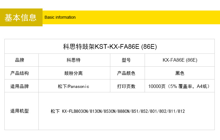 商品名称:科思特 86E(鼓架) 适用松下 KX-FLB803CN/813CN/853CN/888CN/851/852/801/802/811/812黑色 专业版