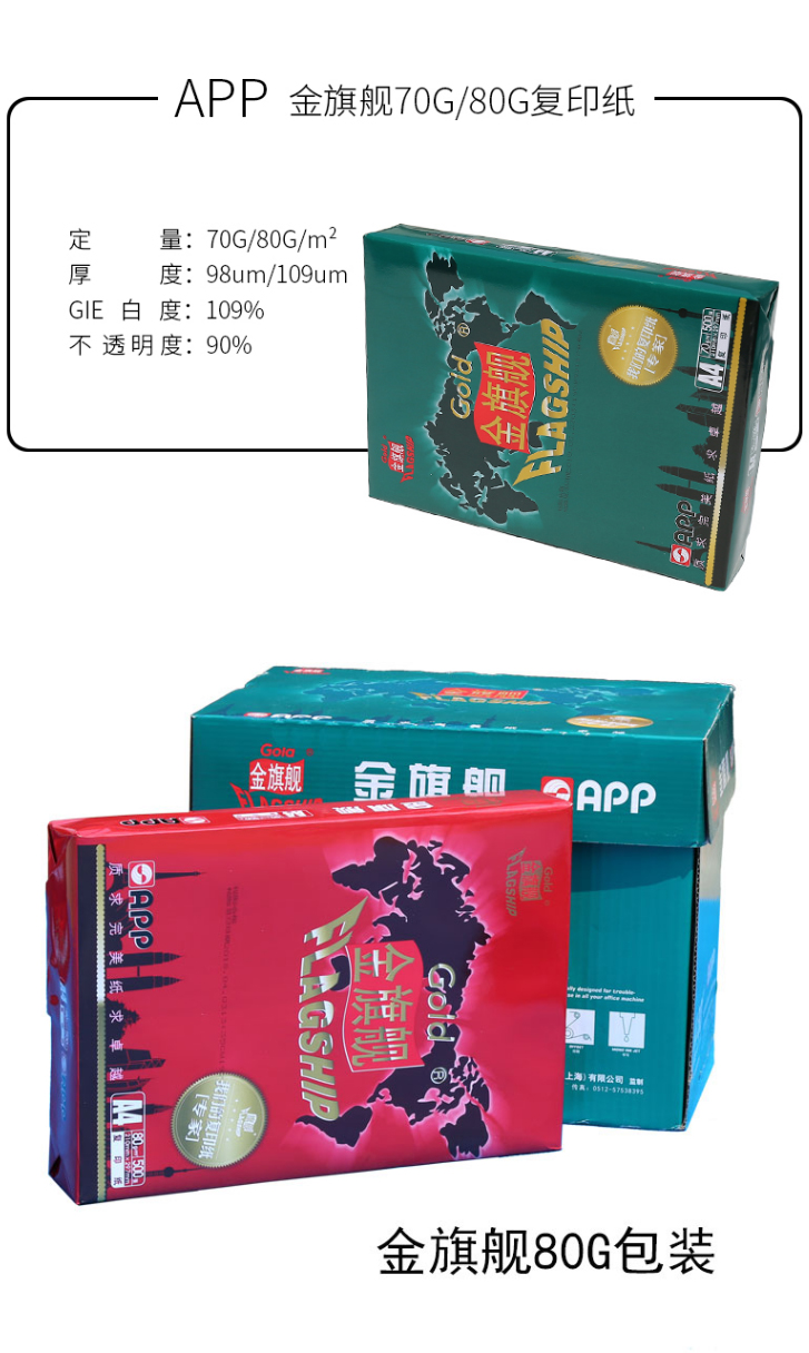 商品名称:金旗舰 A4/80g 复印纸打印纸 500张/包 5包/箱