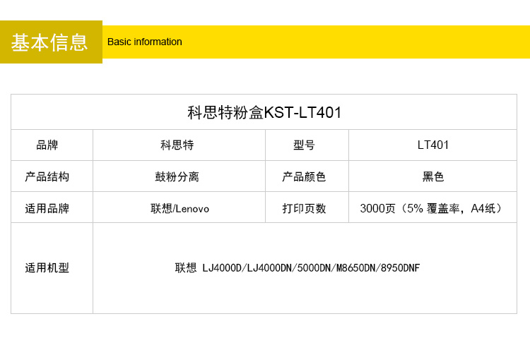 商品名称:科思特 LT401(粉盒) 适用联想 LJ4000D/LJ4000DN/5000DN/M8650DN/8950DNF黑色 专业版