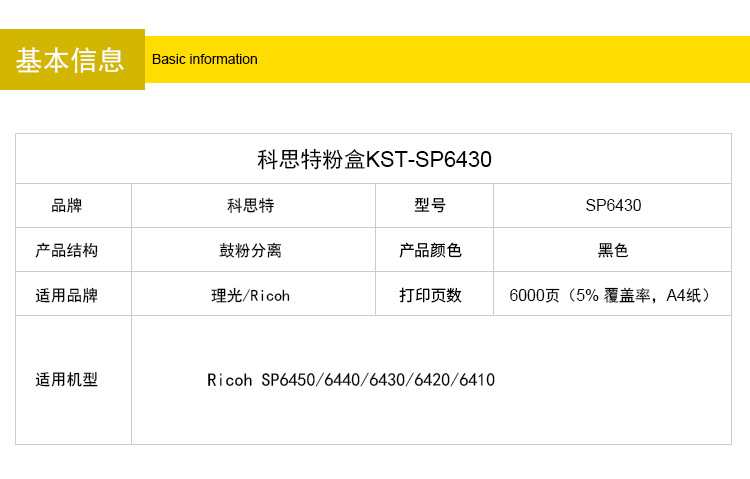 商品名称:科思特 SP6430(粉筒) 适用理光 SP6450/6440/6430/6420/6410黑色 专业版