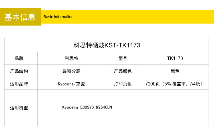 商品名称:科思特 TK1173(粉筒) 适用京瓷 ECOSYS M2540DN黑色 专业版