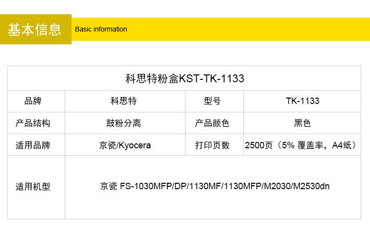 商品名称:科思特 TK1133(粉筒)适用京瓷 FS-1030MFP/1130MF/1030MFP/DP/ECOSYS M2030DN(PN)/M2530DN黑色 专业版