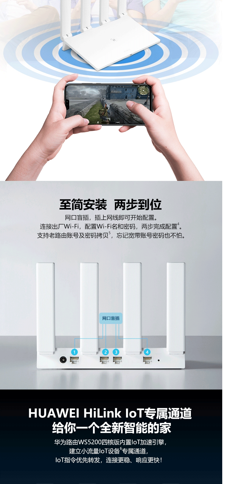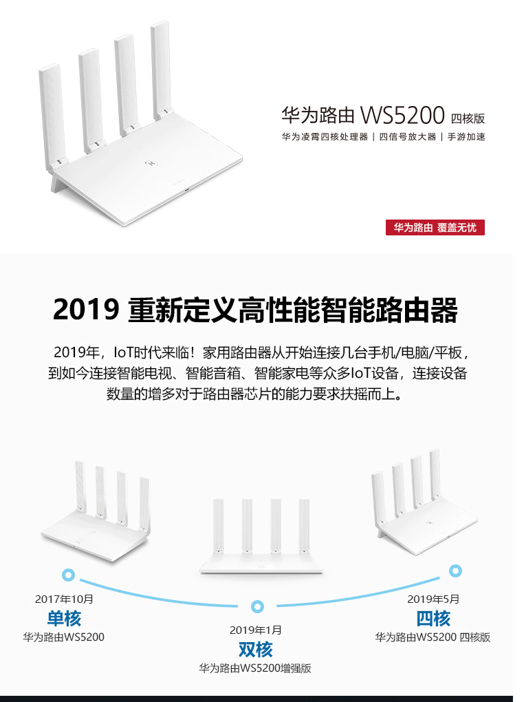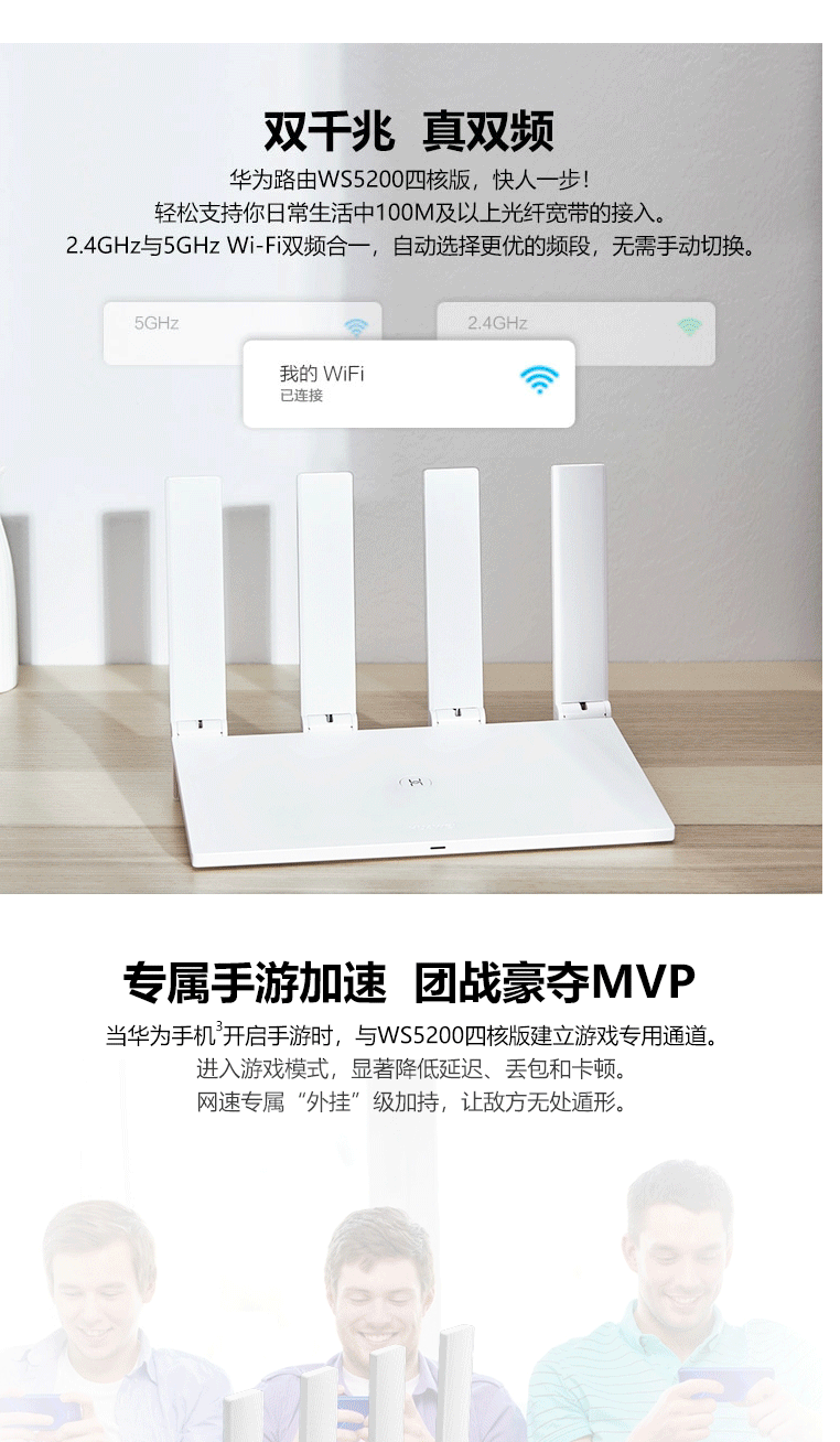 商品名称:华为 WS5200 四核版 凌霄四核CPU 5G双频双千兆智能路由器 无线穿墙 信号放大器
