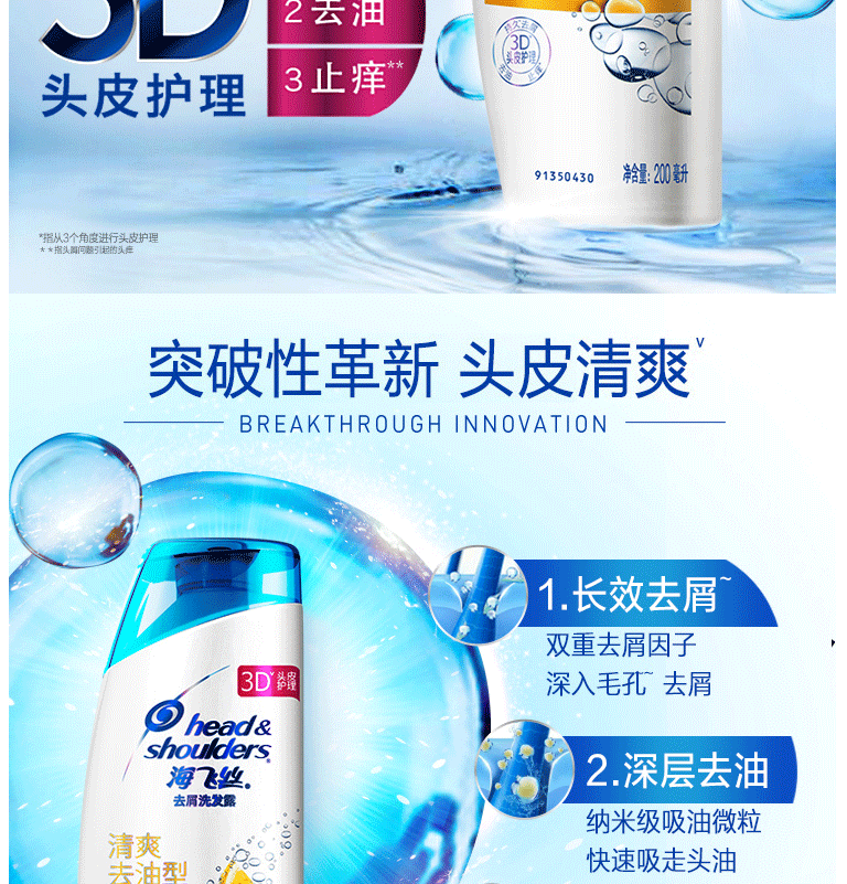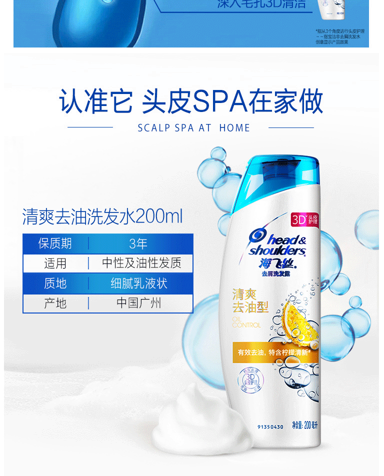 商品名称:海飞丝洗发水去屑洗发露清爽去油型200ml