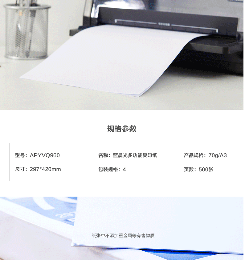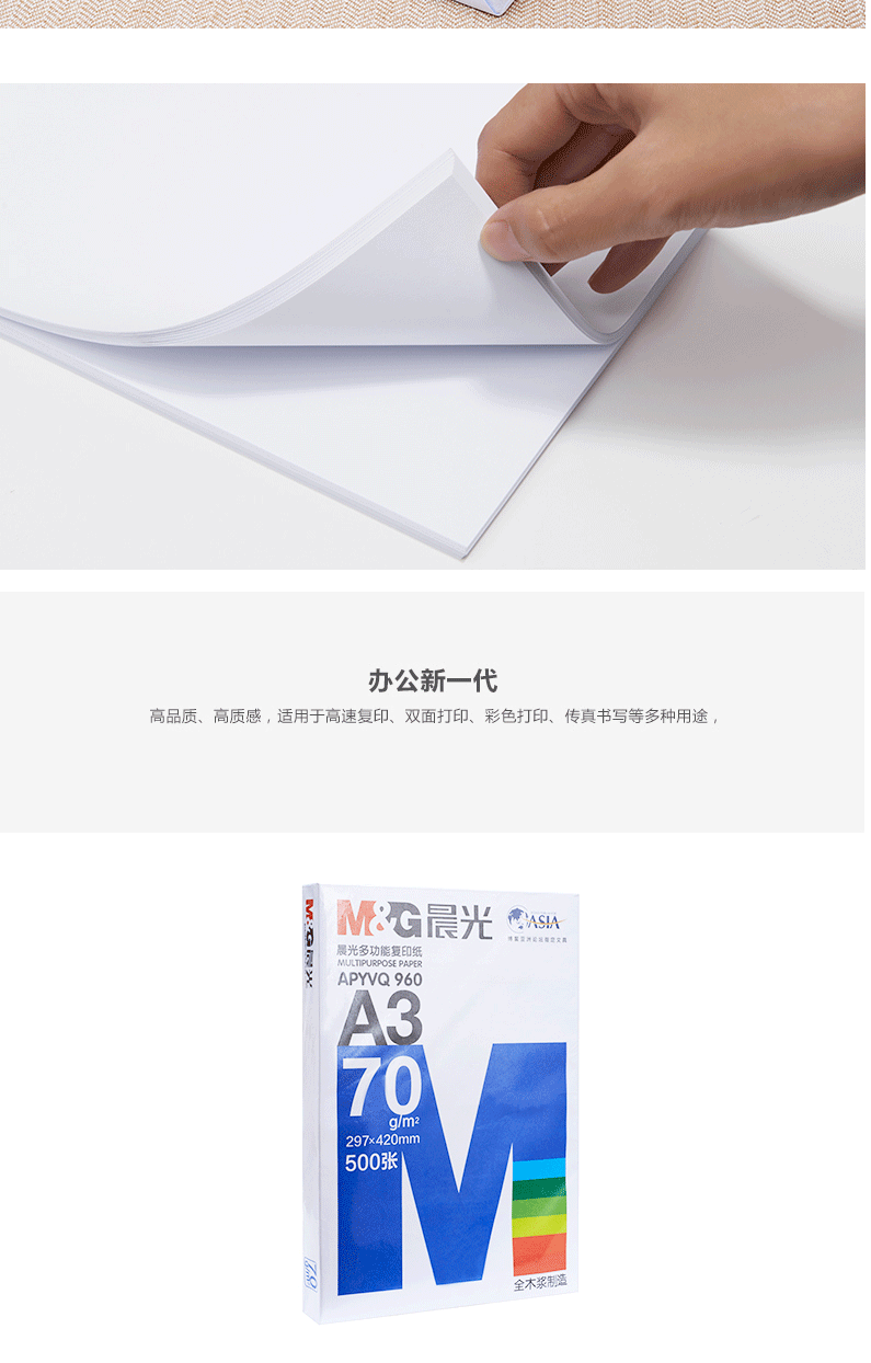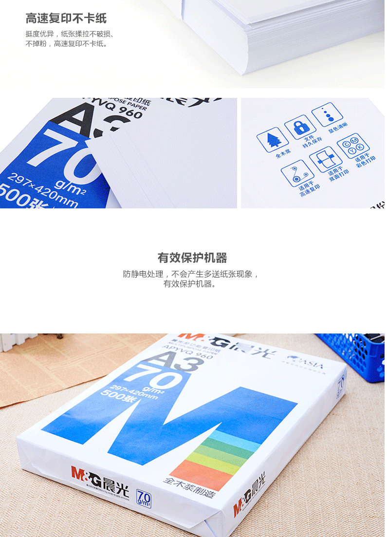 商品名称:晨光(M&G)A3纸打印复印纸70g 500张/包 4包/箱