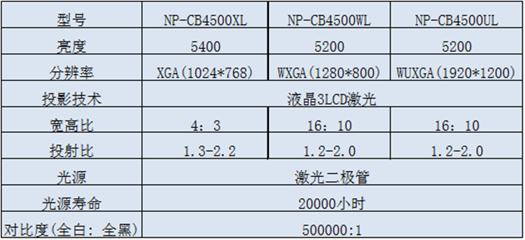 商品名称:NEC NP-CB4500XL 投影仪 办公教学工程高亮液晶激光投影机(20000小时 50万比1对比度 1.7倍变焦)