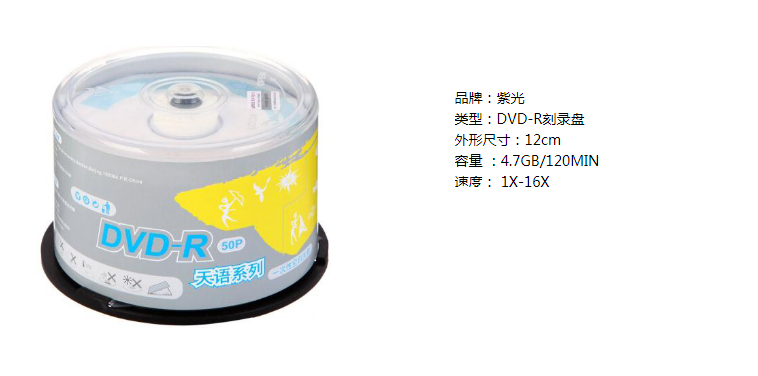商品名称:紫光(UNIS)DVD-R光盘/刻录盘 天语系列 16速4.7G 桶装50片