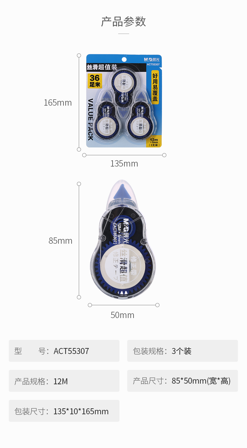 商品名称:晨光丝滑超值装修正带ACT55307白12m