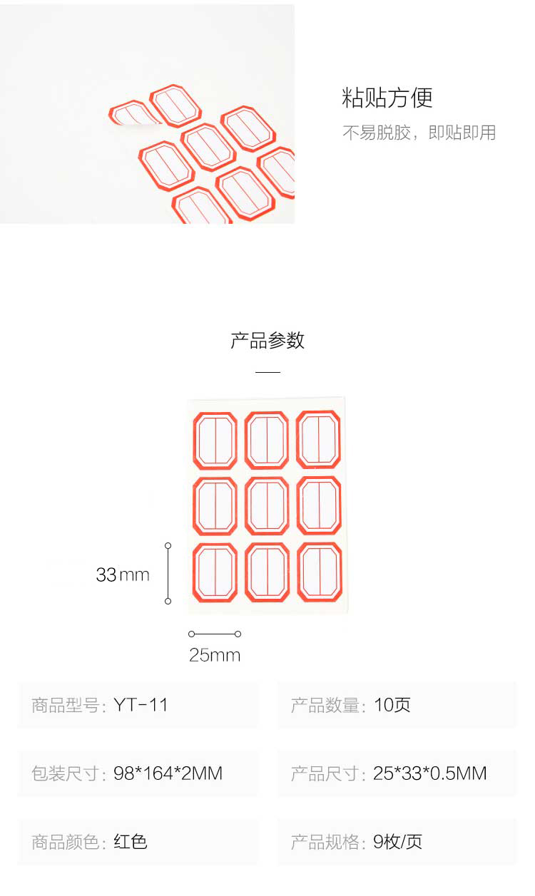 商品名称:晨光9枚X10自粘性标签(红)YT-11