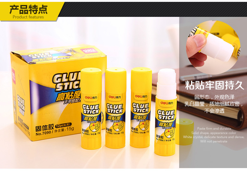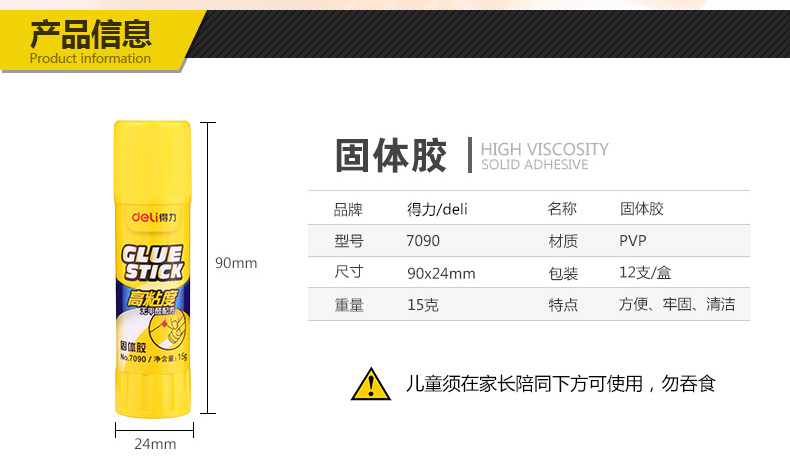 商品名称:得力7090 固体胶 高粘度无甲醛配方15g胶棒 (单位:支)