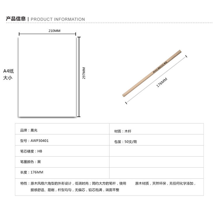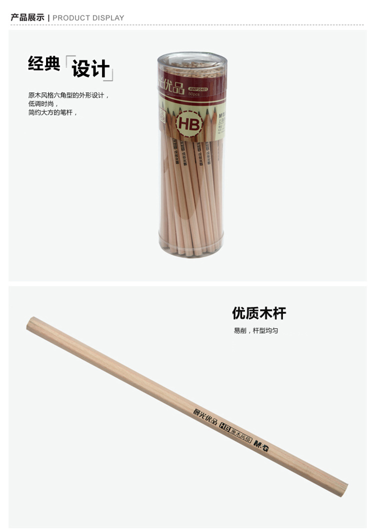 商品名称:晨光HB铅笔优品六角50支筒装AWP30401
