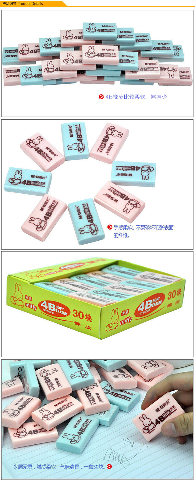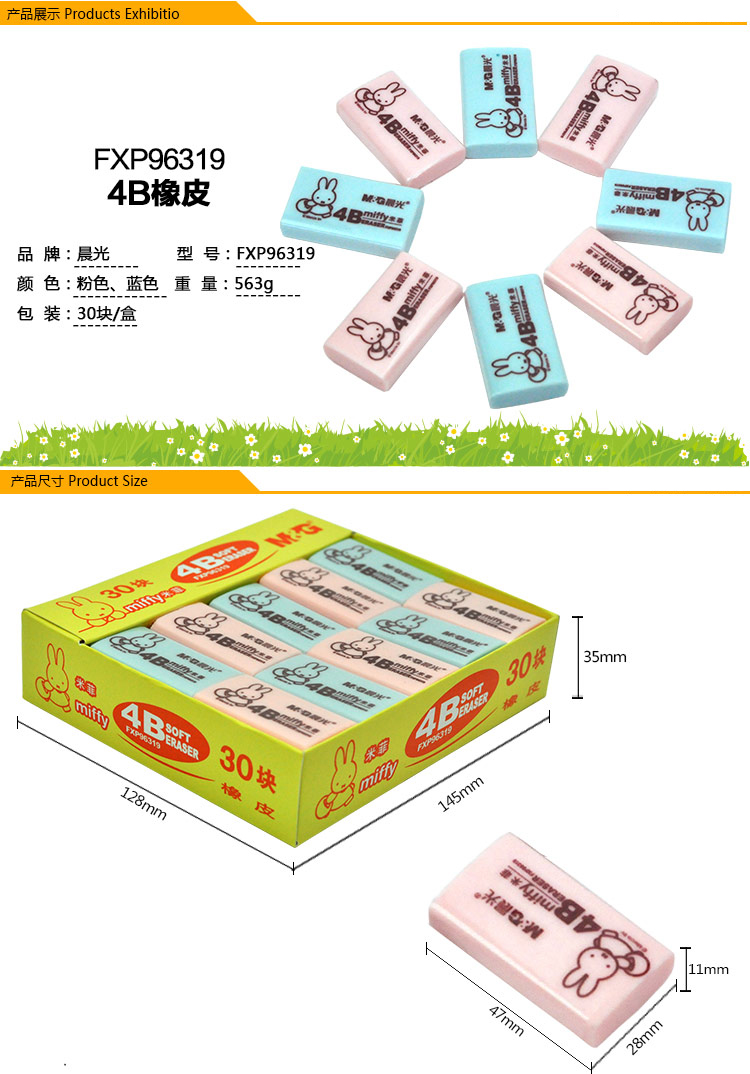 晨光4B橡皮米菲MF6306大 30块