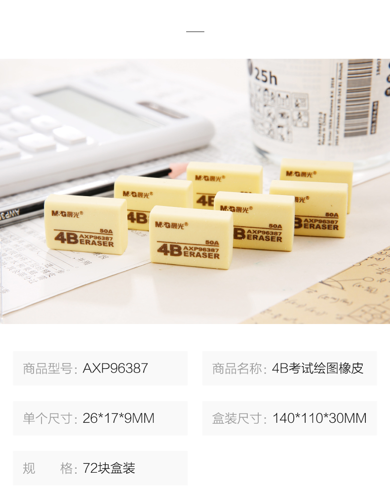 商品名称:晨光50A2B橡皮AXP96448黄72块