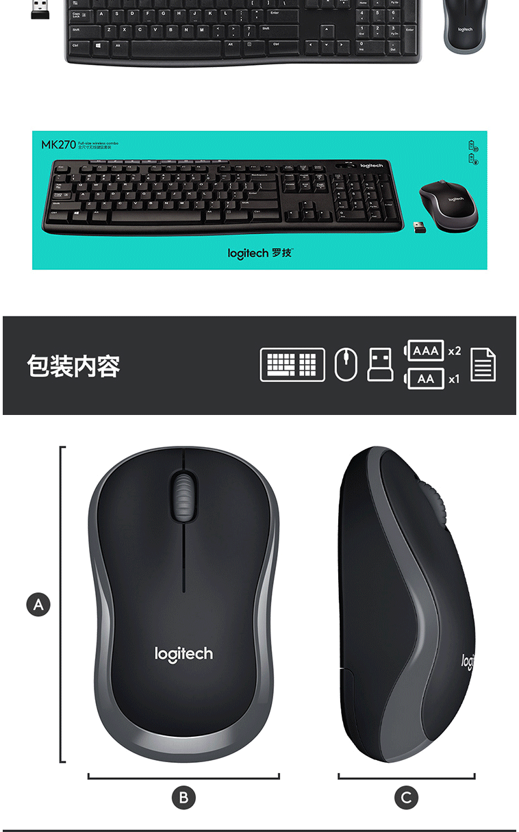 商品名称:罗技(Logitech)MK270 无线键鼠套装 办公键鼠套装