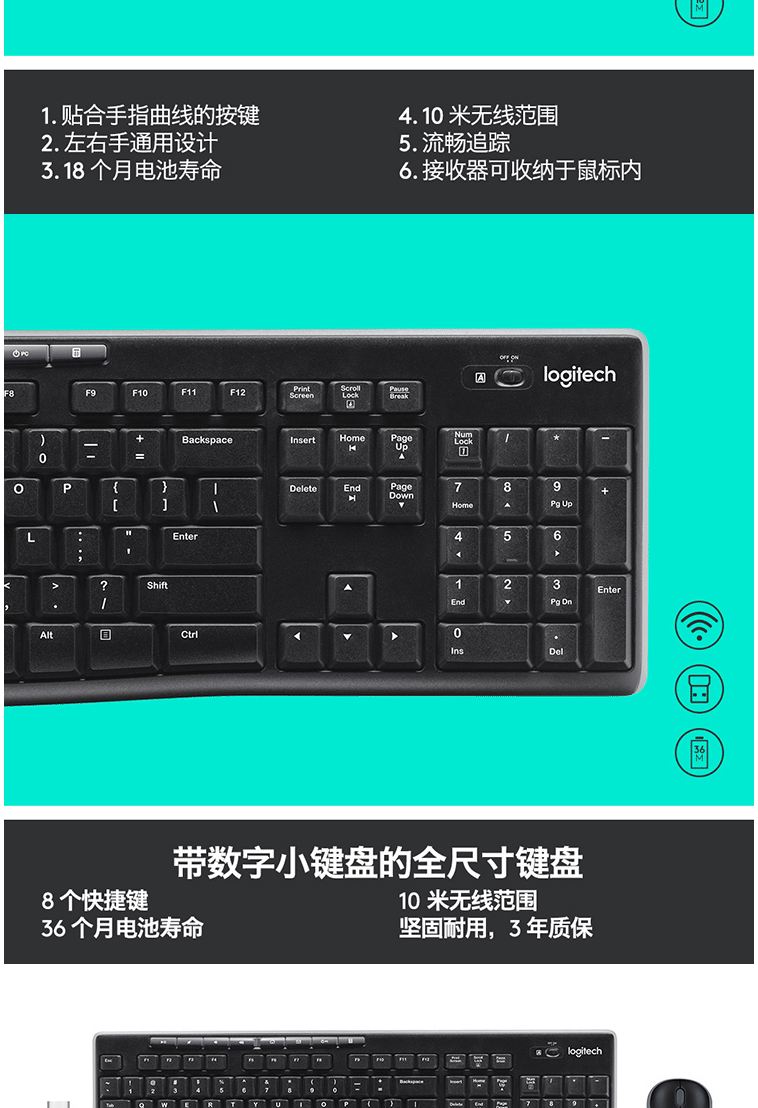 罗技(Logitech)MK270 无线键鼠套装 办公键鼠套装