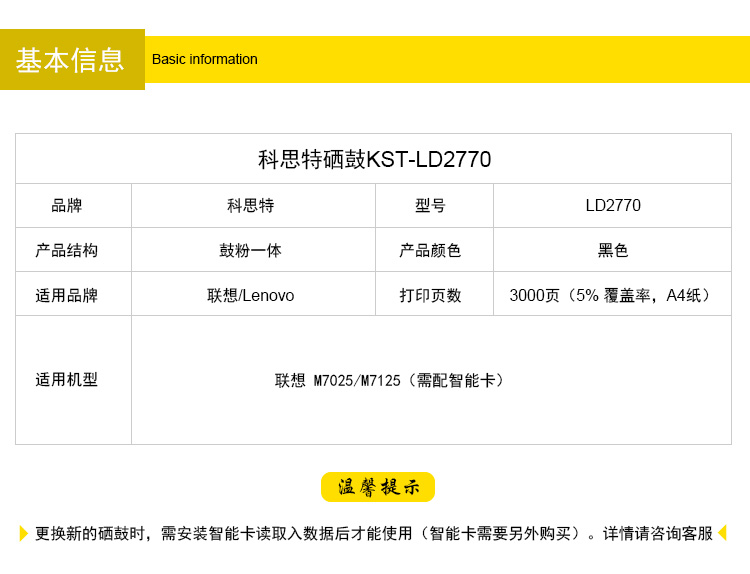 商品名称:科思特 LD2770硒鼓 适用联想 M7025/M7125(需配智能卡)黑色 专业版