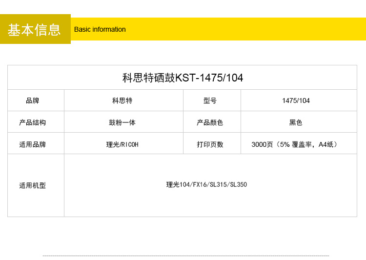 商品名称:科思特 SP1475 硒鼓 适用理光 FX16 ,SL315,SL350/ Ricoh Ac104 黑色 专业版